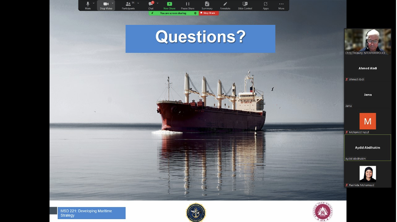 In six sessions, delivered remotely during September, October and November 2024, INTERPORTPOLICE gave lectures on how the International Maritime Organization works, the development of maritime security measures, security in ports, the development of counter piracy measures including the legal challenges of armed security teams on board, the effects of climate change on maritime security and new and emerging threats to maritime security. Recurring themes included the need for a whole-of-government approach to maritime security and the programmes offered by INTERPORTPOLICE.